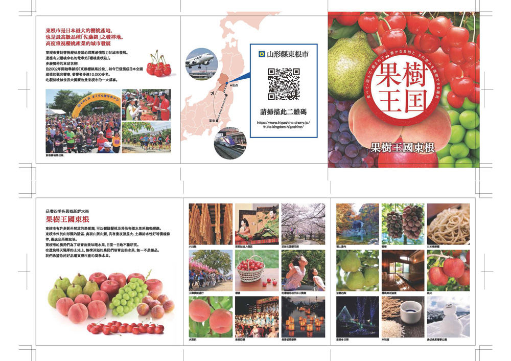 山形県東根市のインバウンド向け観光リーフレットの多言語翻訳と、レイアウト校正。